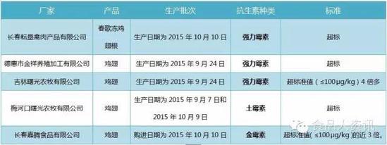 哪6個(gè)批次雞肉產(chǎn)品抗生素殘留超標(biāo)?