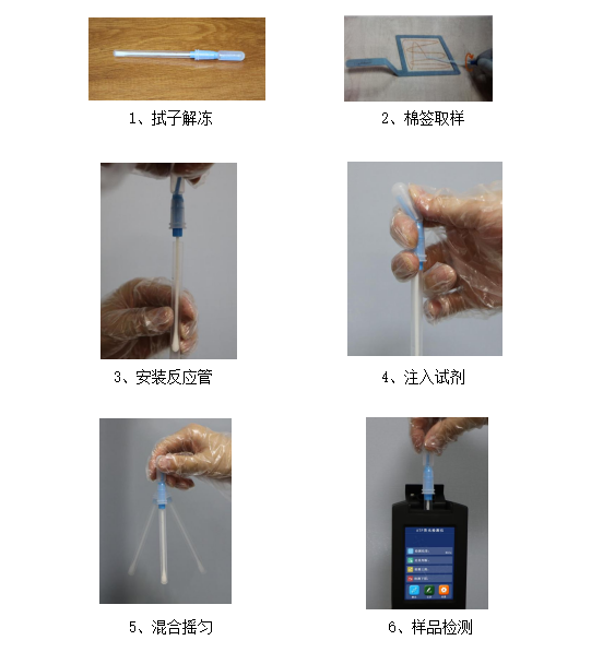 采用化學(xué)反應(yīng)檢測ATP,用拭子采集標(biāo)本,拭子被緩沖液浸濕,這樣有助于從干燥或濕潤的表面提取生物物質(zhì)(ATP)。拭子也含有一種可以沖破生物膜的試劑,使其下可能存在的生物體暴露出來。標(biāo)本采集后,拭子應(yīng)浸泡在能將細(xì)胞內(nèi)ATP釋放出來的容劑中。而后細(xì)胞內(nèi)部釋放出的ATP、以及拭子從設(shè)備表面抹取的ATP再拭子獨(dú)特的液體試劑一起反應(yīng)。拭子的液體試劑含有兩種螢火蟲酶---熒光素和熒光素酶,蟲熒光素和蟲熒光素酶在ATP存在的條件下會(huì)發(fā)光。發(fā)出的光可由冠宇儀器ATP熒光檢測儀進(jìn)行檢測。檢測的發(fā)光量與ATP的總量成正比。數(shù)值越高,表明ATP的量越多,也就意味著表面的殘留物越多。