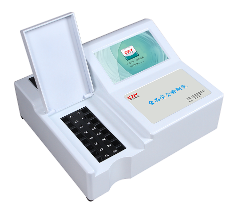 CSY-DS803肉類安全檢測(cè)儀由光源、比色池、高靈敏度集成光電池、微處理器、全漢字大屏幕液晶屏、嵌入式微型熱敏打印機(jī)、無(wú)線傳輸模塊和集成芯片構(gòu)成,可直接在大屏幕液晶屏上顯示出被測(cè)樣品中相關(guān)指標(biāo)的含量,并打印出分析結(jié)果,還可以通過(guò)計(jì)算機(jī)接口將數(shù)據(jù)傳輸?shù)健笆称钒踩畔⑾到y(tǒng)”終端數(shù)據(jù)庫(kù)進(jìn)行分析。該方法單次檢測(cè)成本較低、操作簡(jiǎn)便快速, 方便檢測(cè)人員或生產(chǎn)質(zhì)控人員現(xiàn)場(chǎng)使用和車載使用。